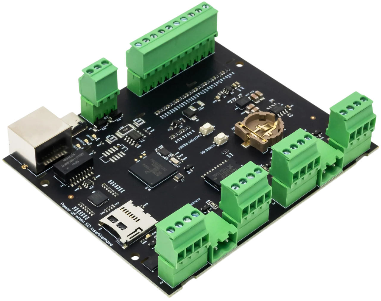 Connectique : borniers à vis – USB-C – RJ45