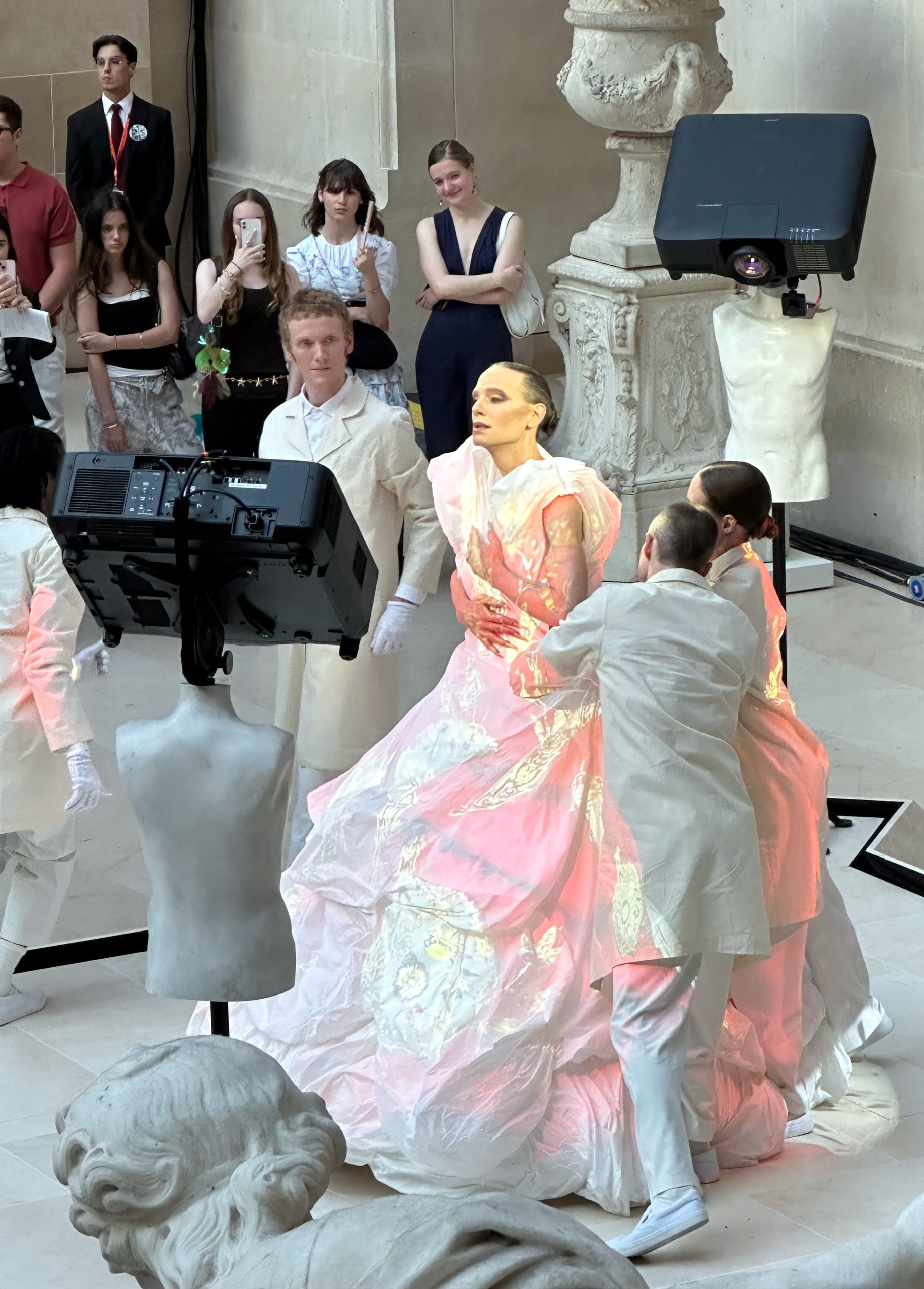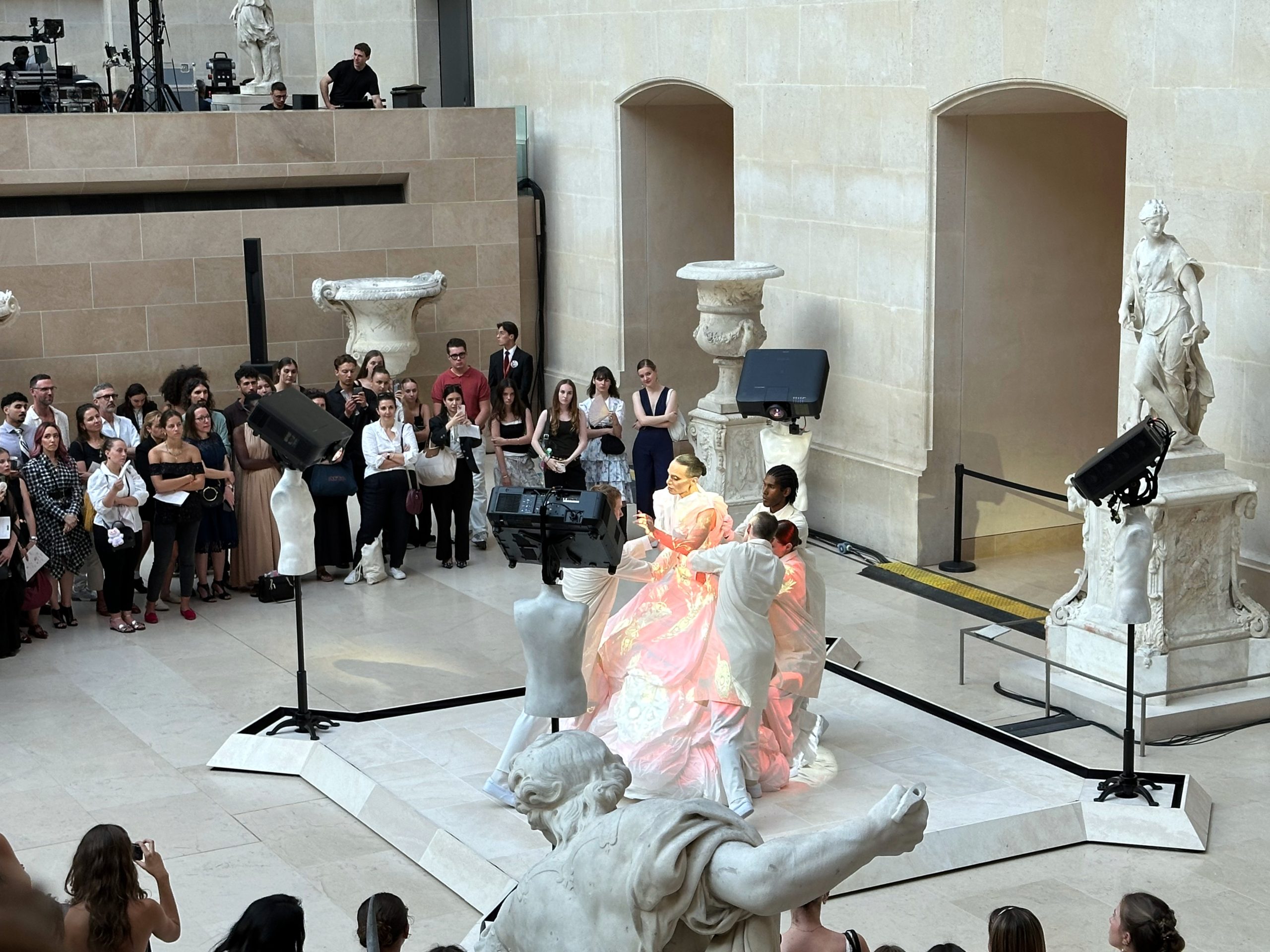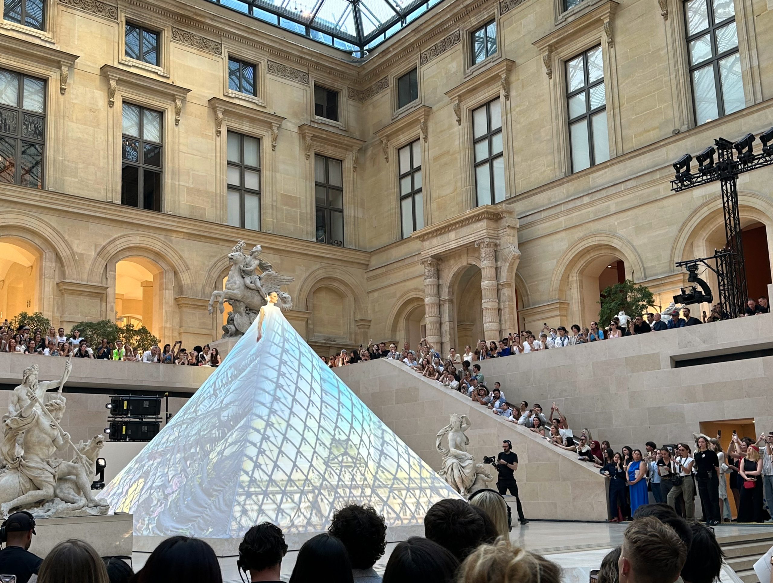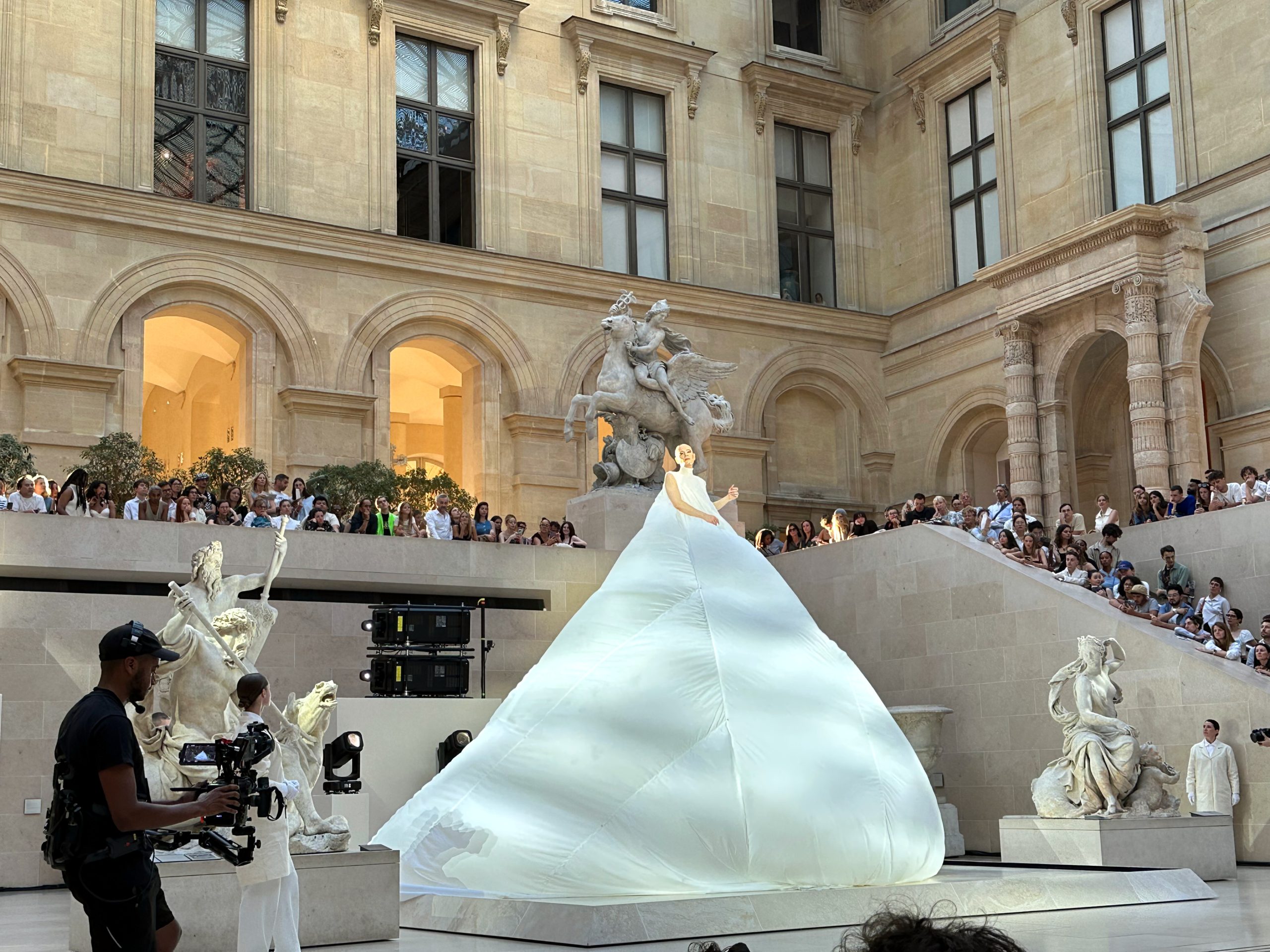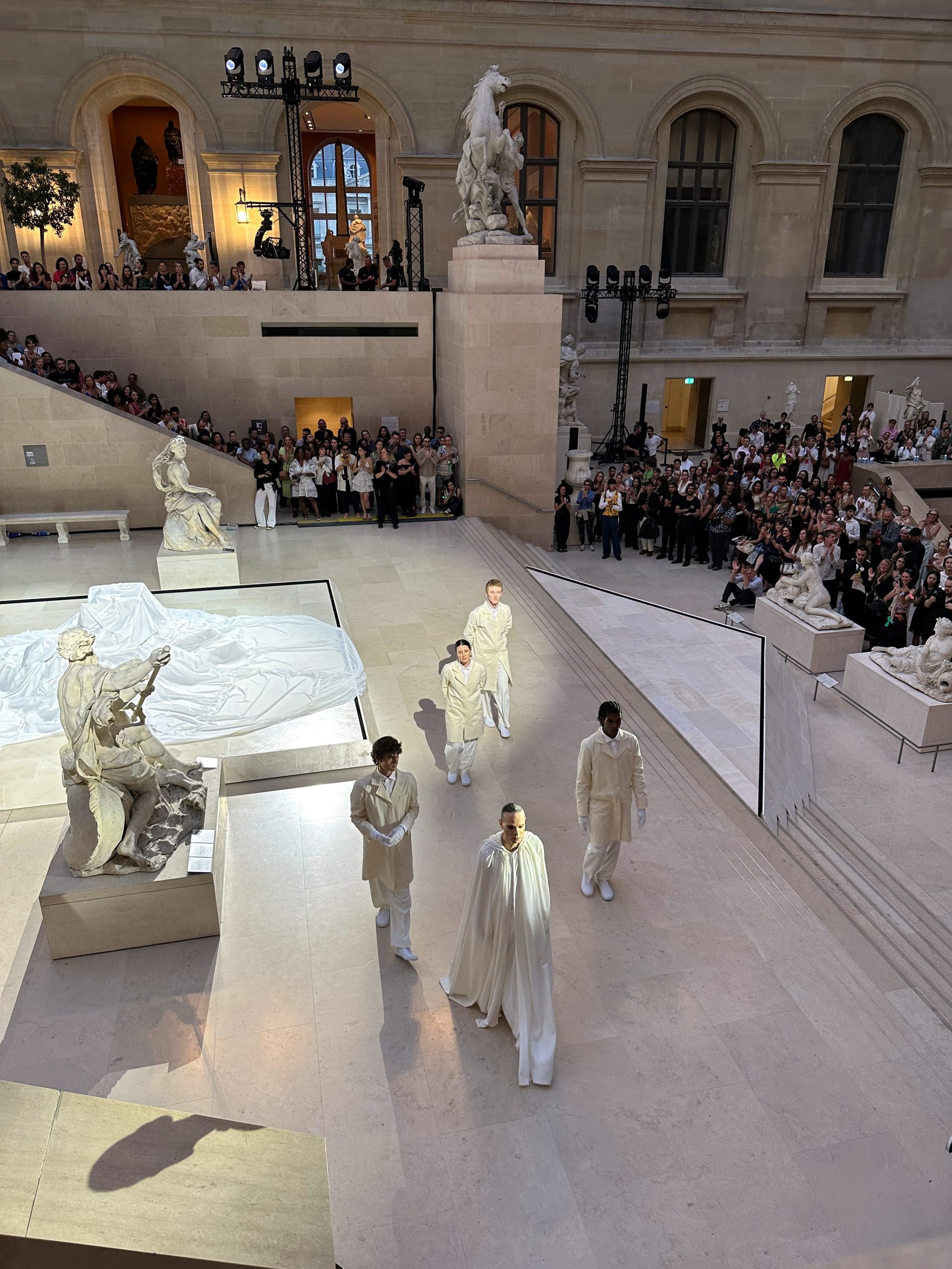 L’événement s’est déroulé dans la Cour Marly, un espace qui sert de lien entre l’architecture classique du musée et la nouvelle exposition Louvre Couture.